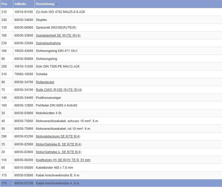 Zespół wrzeciona kablowego A dla Mover TE/H TE/SE R/H SE R/TE R/H TE R/TE R4/SE/H SE