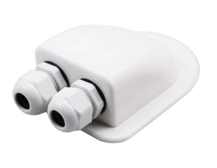 Przepusty dachowe pojedyncze i podwójne dostępne są w kolorze białym, z szerokim szwem na klej. Łatwy montaż za pomocą kleju SIKA. Przepusty dachowe są wodoszczelne i zapewniają bezpieczny montaż kabla. Idealne do montażu na dachu kampera lub łodzi.