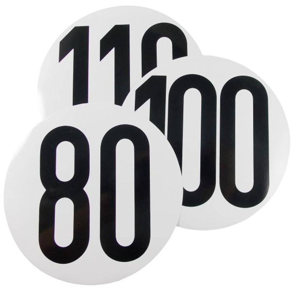 Samoprzylepne znaki, które są obowiązkowe dla samochodów kempingowych powyżej 3,5 tony we Francji. Obejmują one prędkości 80/100/110 km/h.
